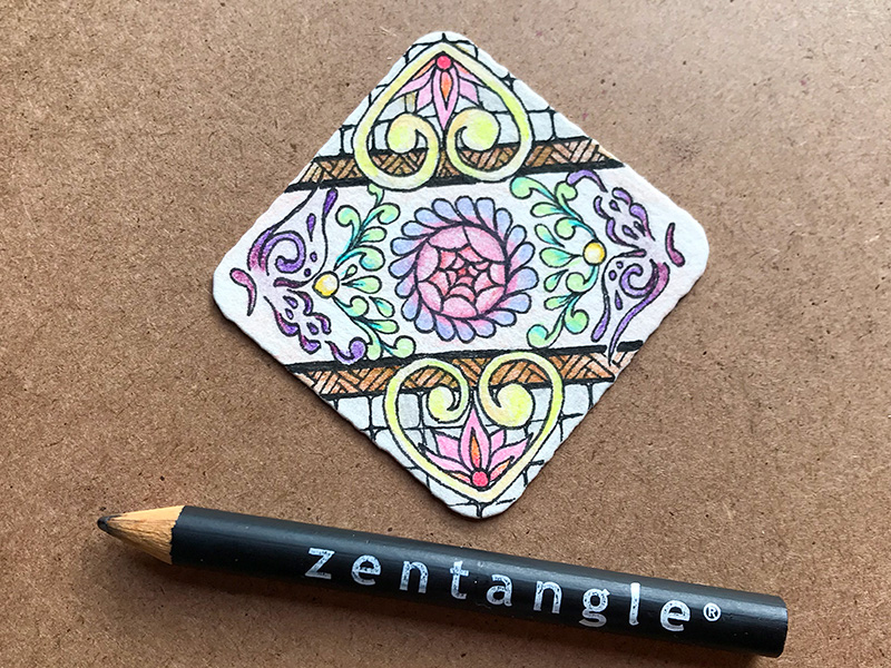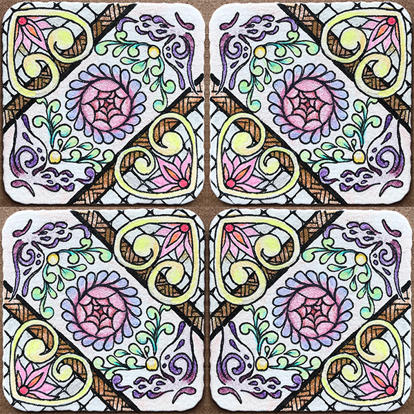 ビジュータイルに限らないのですが、ゼンタングルを描いたタイルを並べると面白いです。