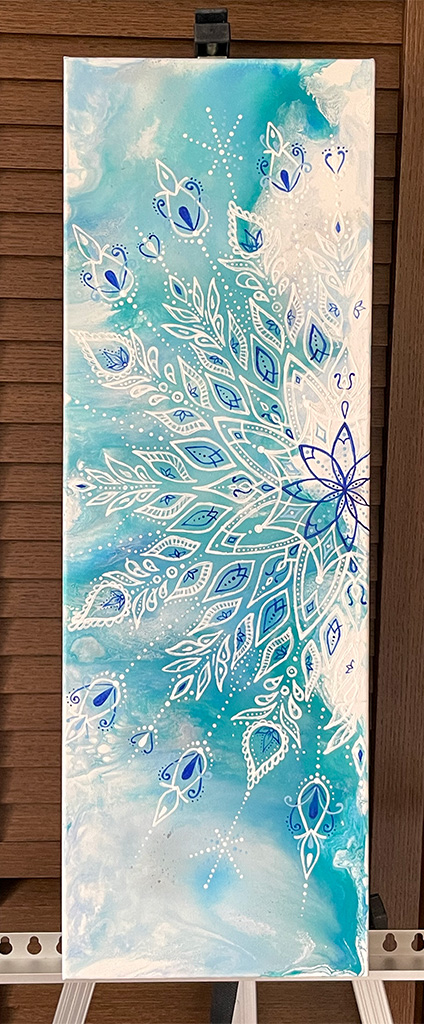 こちらも下地を塗ったキャンバスにアクリル絵の具で模様?をつけてます