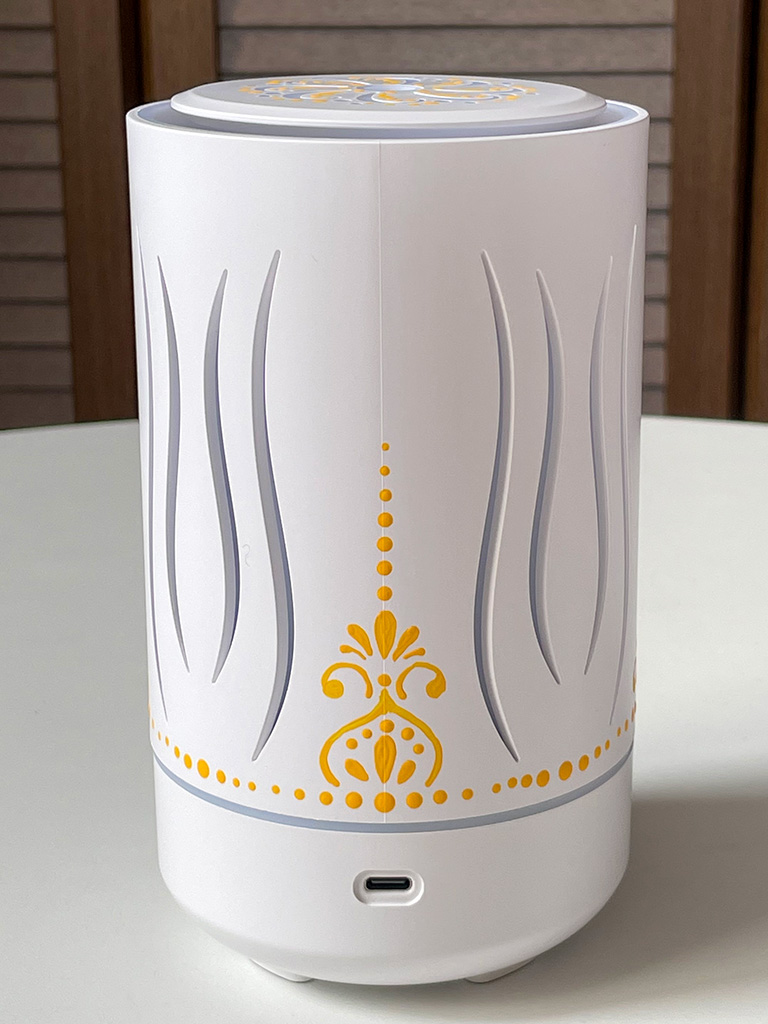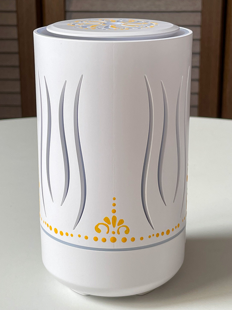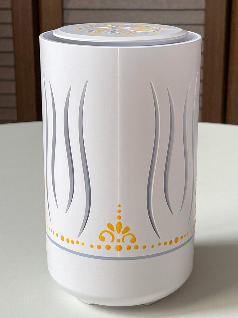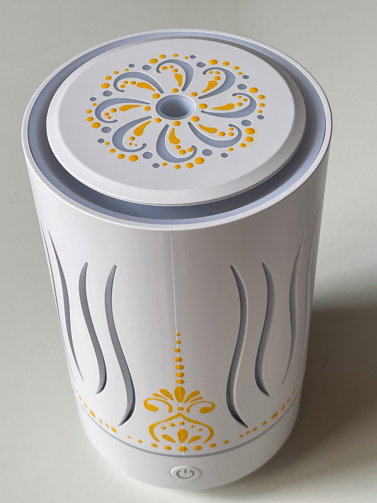 6つ目の敬老の日のプレゼントのアロマランプに描いた模様はドットアートと、タイルアートの模様なんかでよく見かけるような雰囲気の模様をオレンジ色で入れました